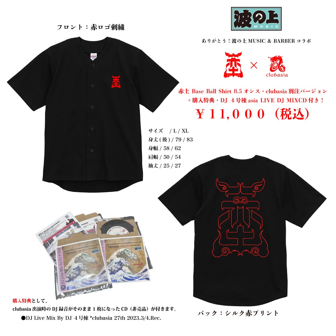 赤土×CLUB ASIA別注 Base Ball Shirt (DJ 4号棟 LIVE MIX CD付き)